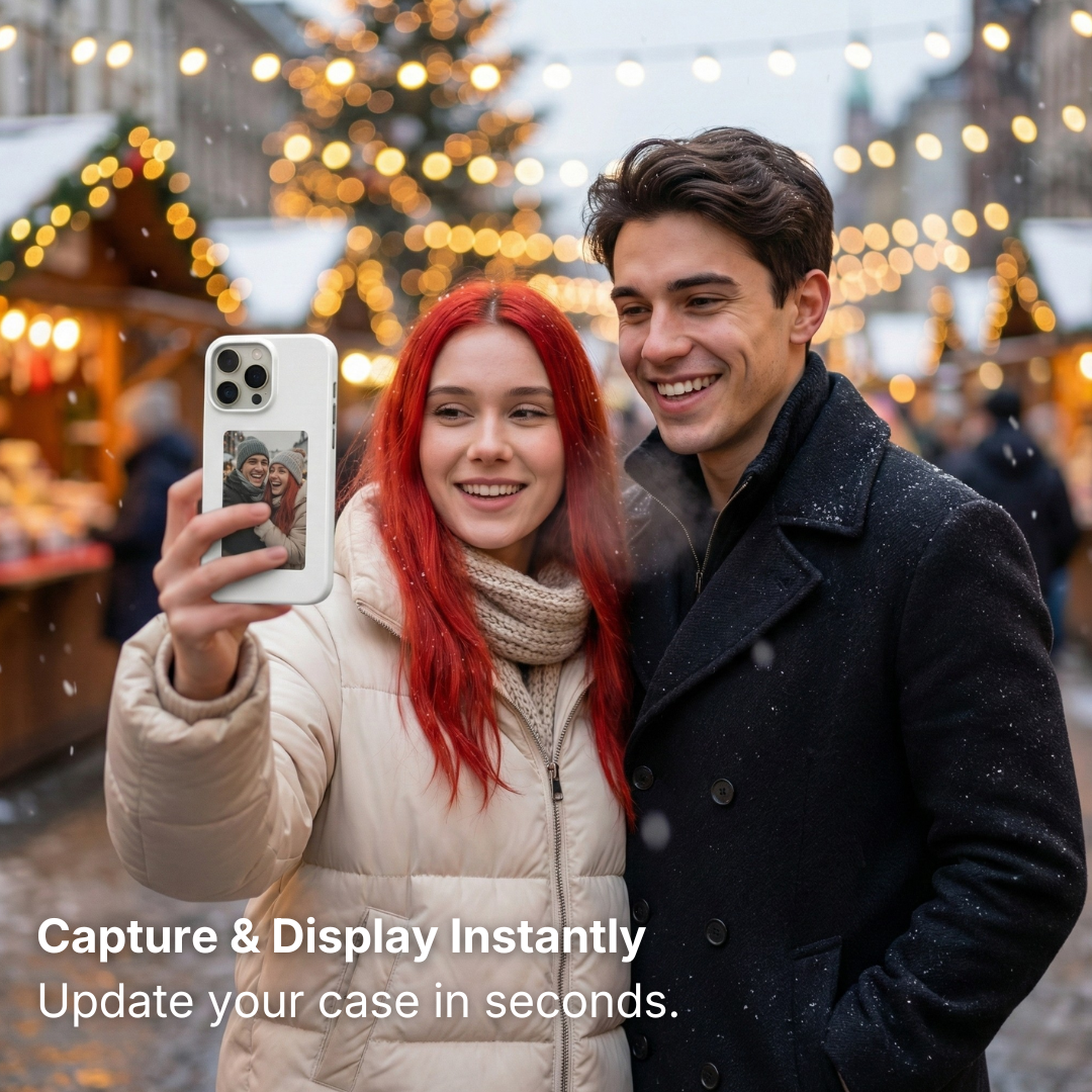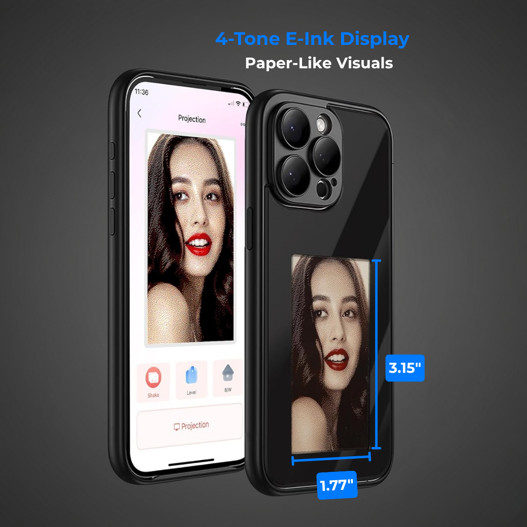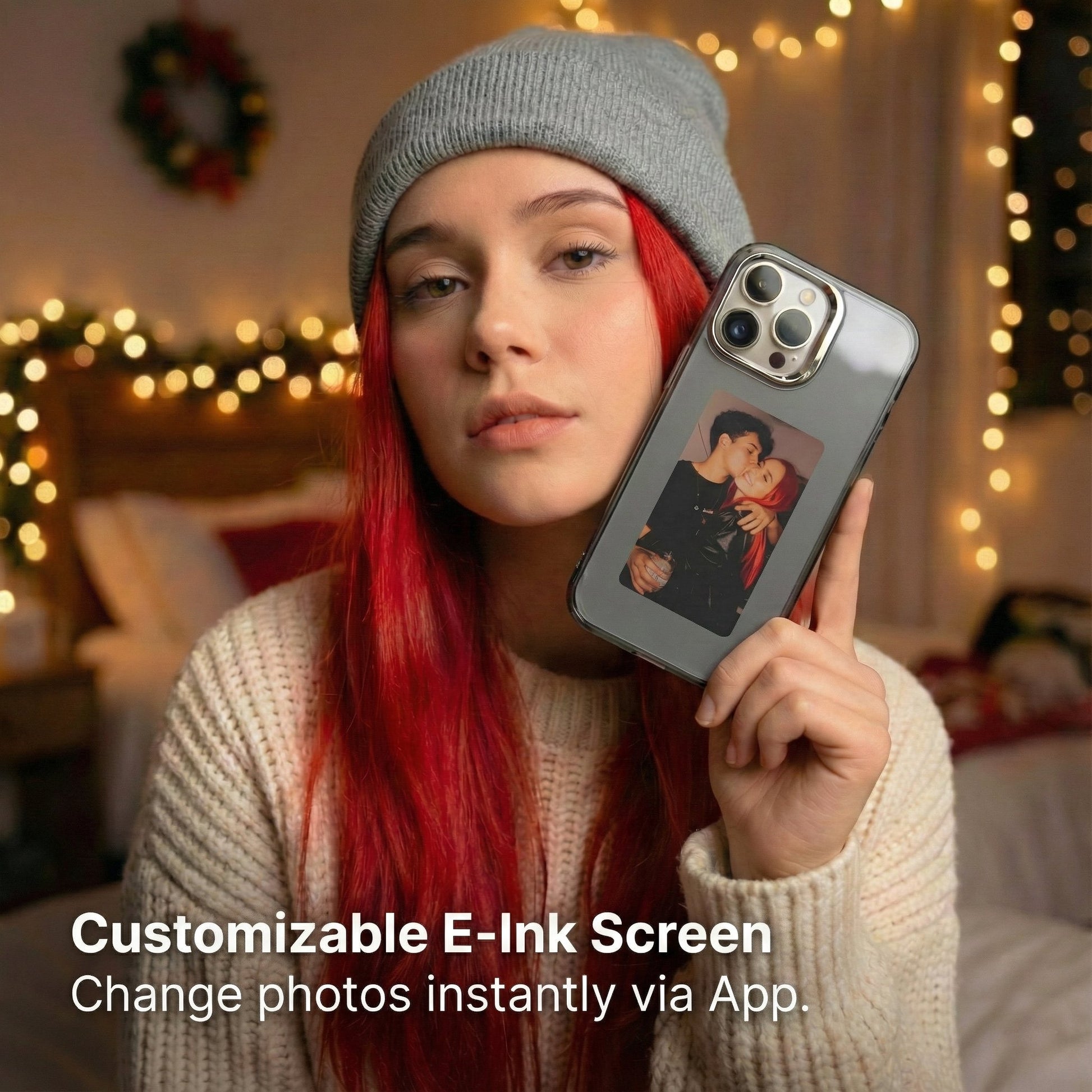 Explore the heart of mysnapcase: our unique 4-tone E-Ink display. Experience its distinctive paper-like visuals, designed for perfect clarity. Always on, always visible.